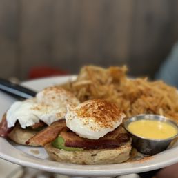 The food is incredible! That cinnamon pancake OMG!!! The hash browns are the best I have ever ever had! They are flavorful and cooked perfectly! The salmon benefit is pretty good.